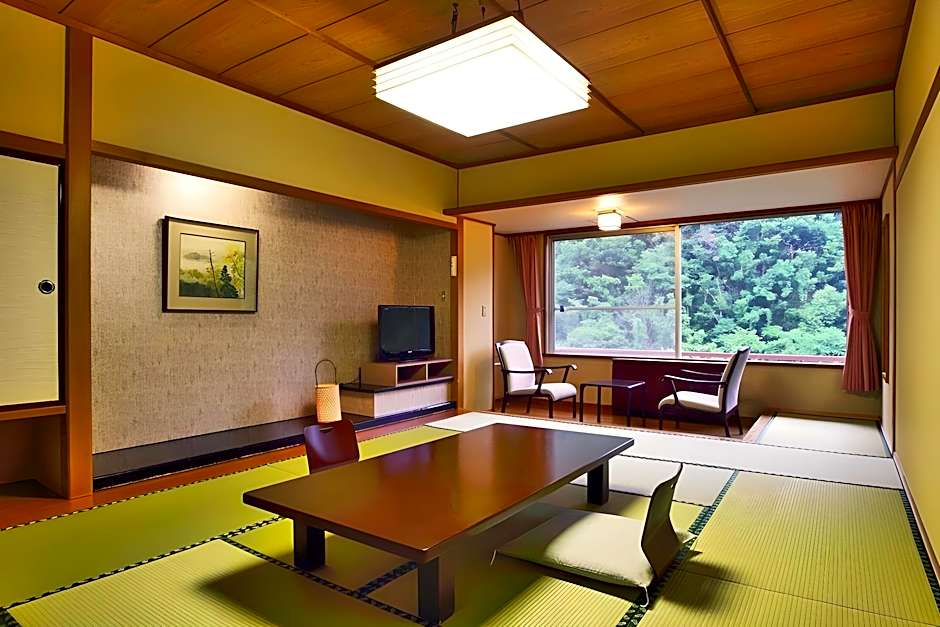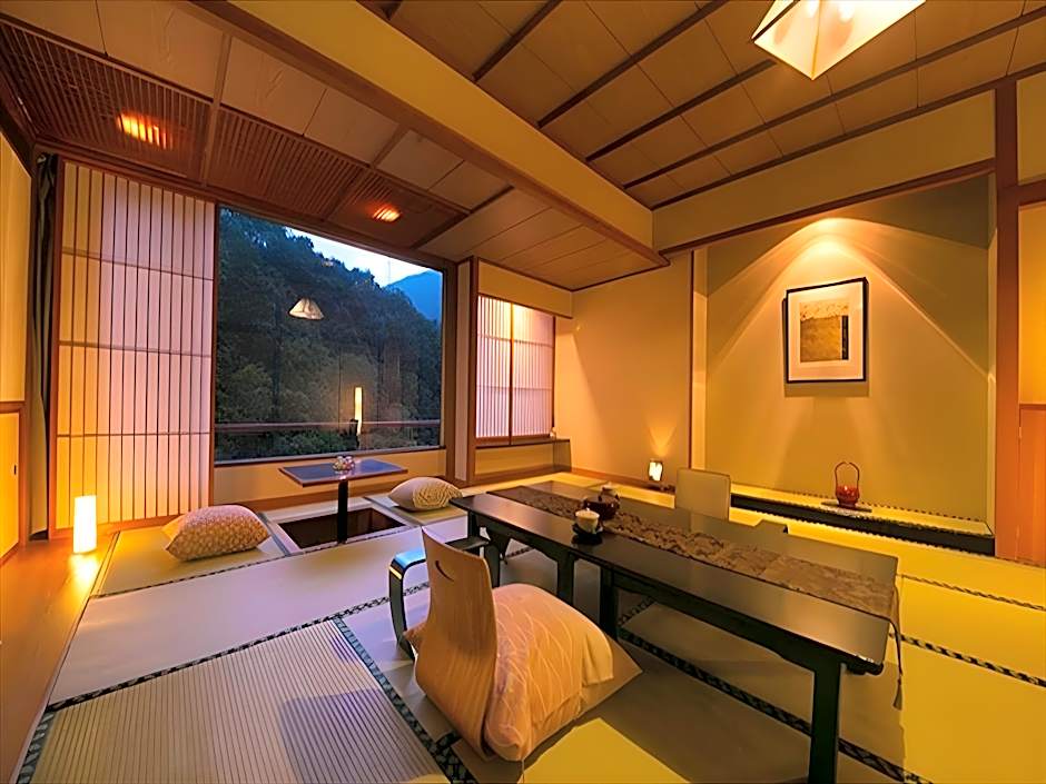 The family room features air conditioning, tatami, as well as a private bathroom boasting a bath and a shower. The family room provides a wardrobe, a safe deposit box, yukata, a flat-screen TV, as well as mountain views. The unit has 5 futons.